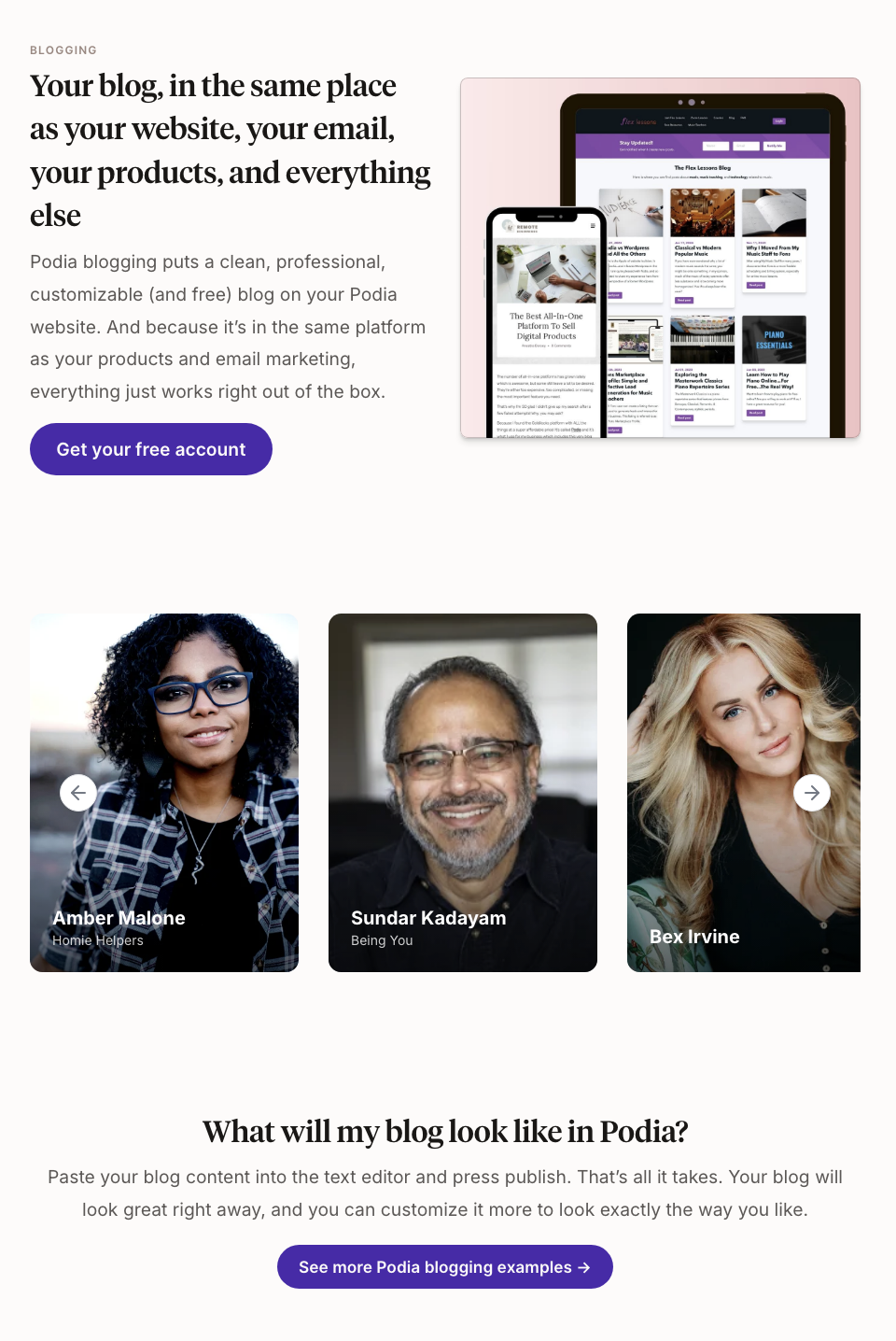 Beta: Building on the success of the Podia Email beta, we structured the Blogging beta much the same way. Because this launch wasn't as technically complex, we needed fewer cohorts but used this process to build excitement for the coming release.